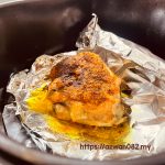 - Letakkan aluminium foil dalam air fryer & letak ayam di dalamnya.